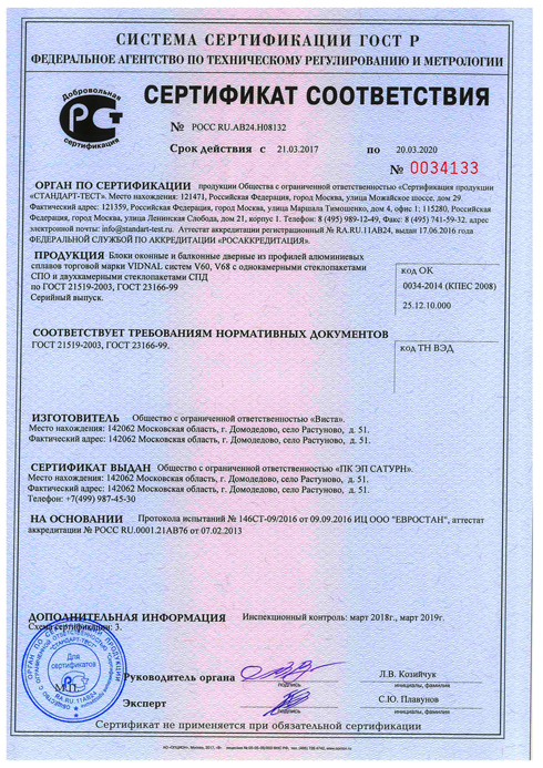 Сертификаты HomeDoors